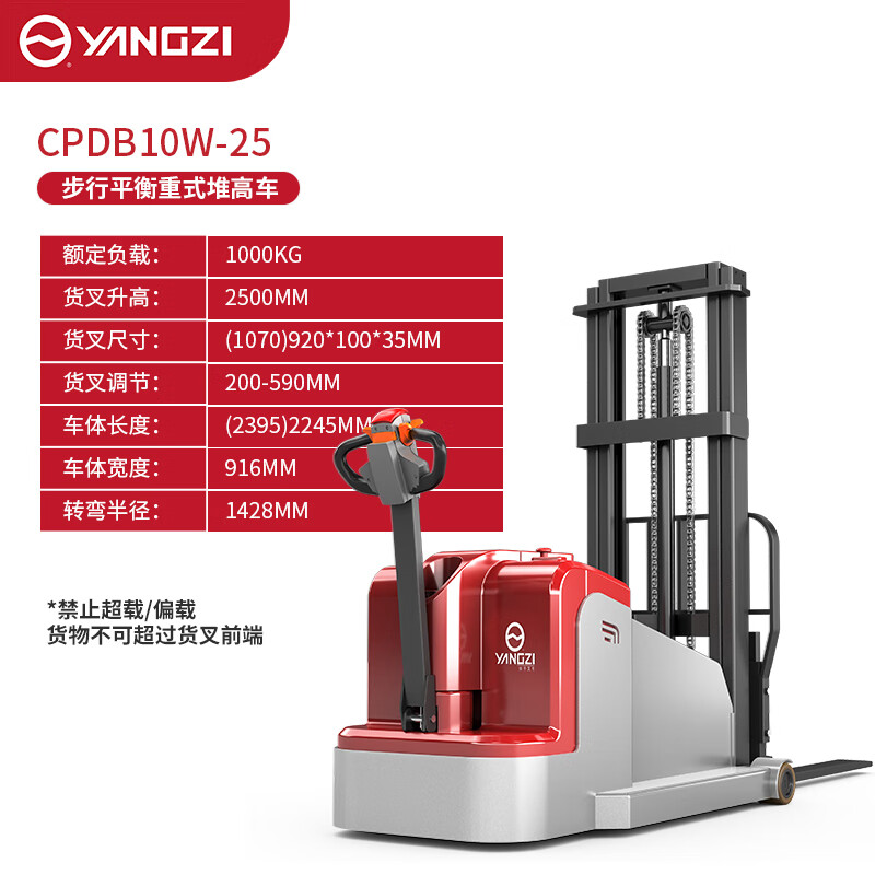 揚子電動叉車平衡重堆高車步行式無腿堆垛車CPDB10W-25